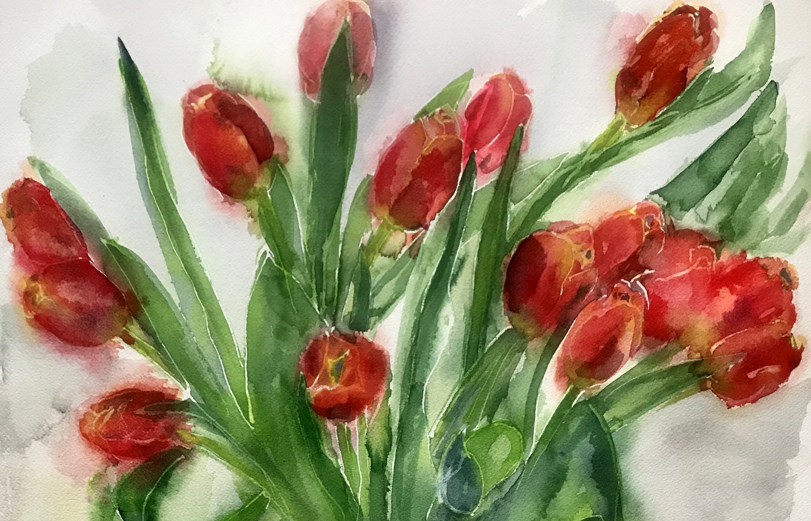Painting Still Life With Red Tulip Flowers Watercolor Tutorial Agnes Bodor Skillshare